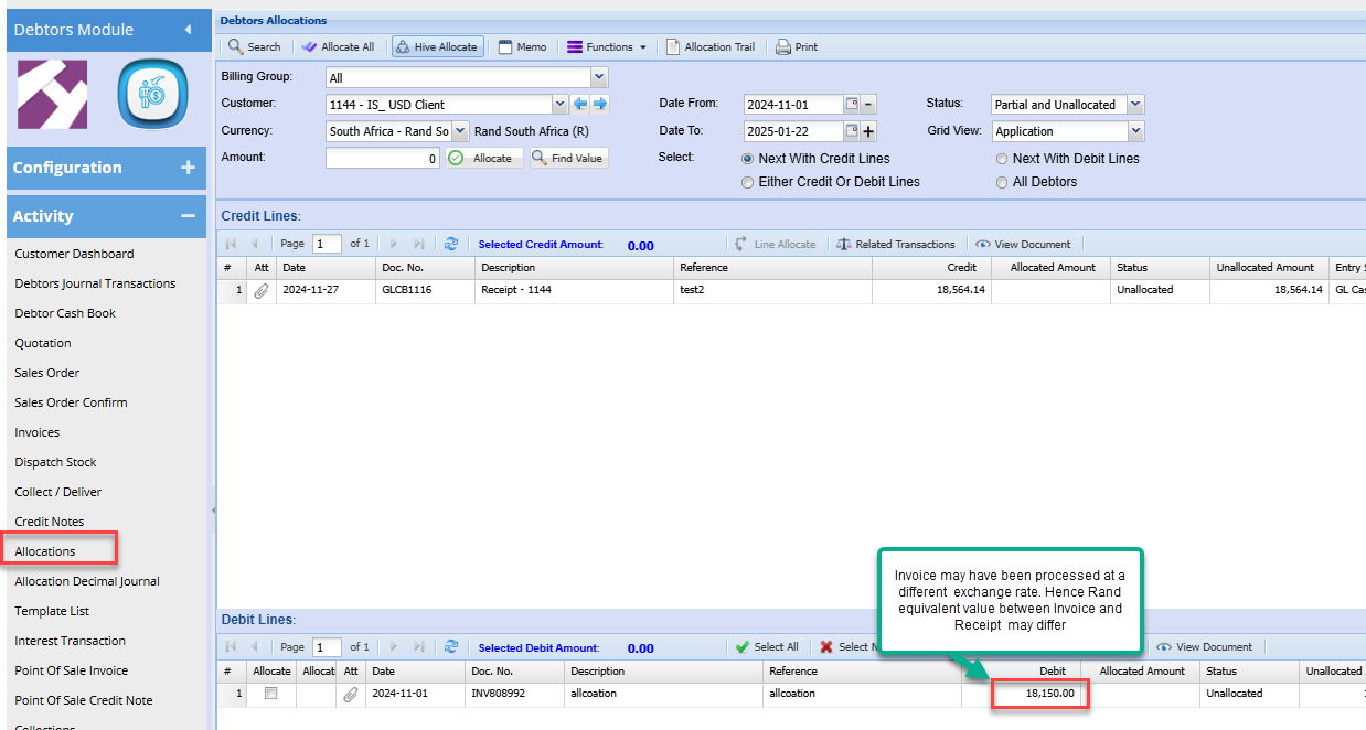 Allocation of receipts from foreign debtors must be done in both the foreign currency as well as Rand