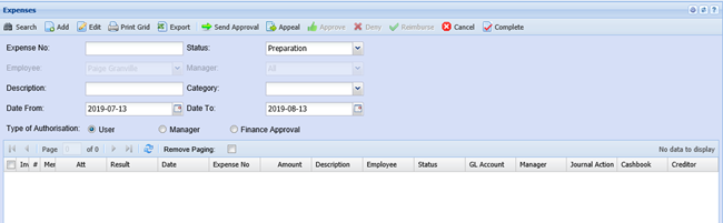 Expenses Menu