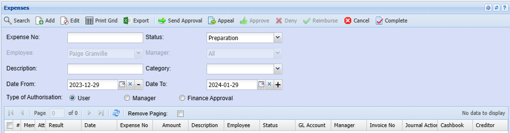 | Cancel | Cancel an expense |