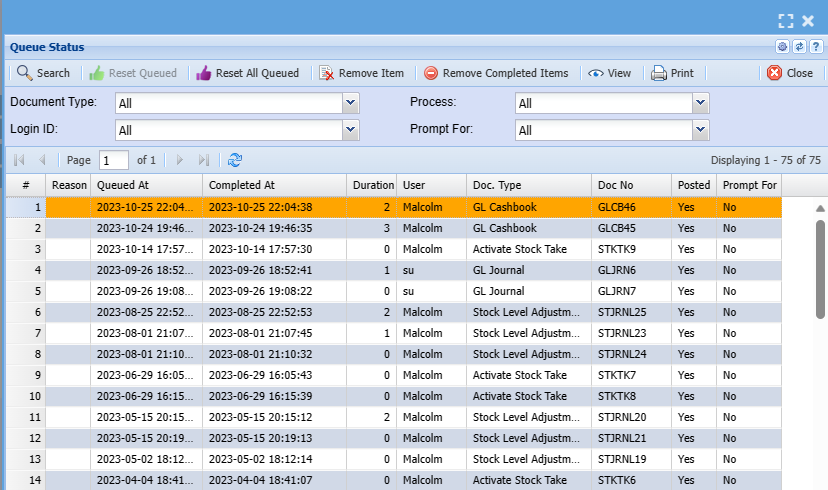 All Journals processed are saved in Journal History and can be reprinted at any stage.