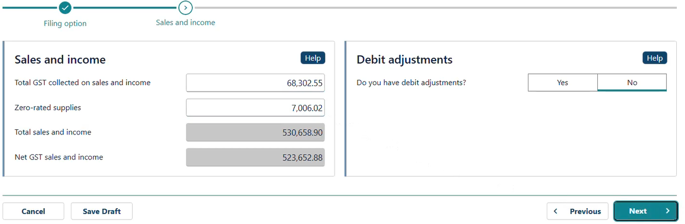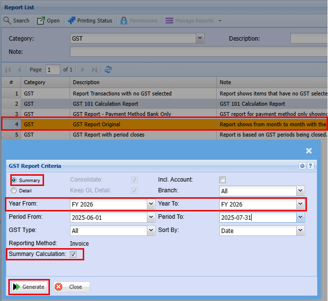 - Please choose the appropriate date range for your bi-monthly GST filing.