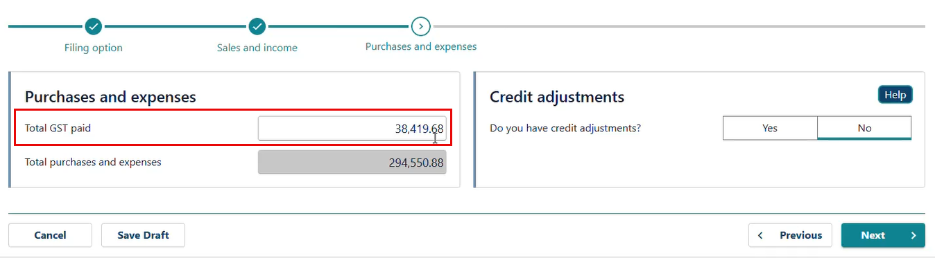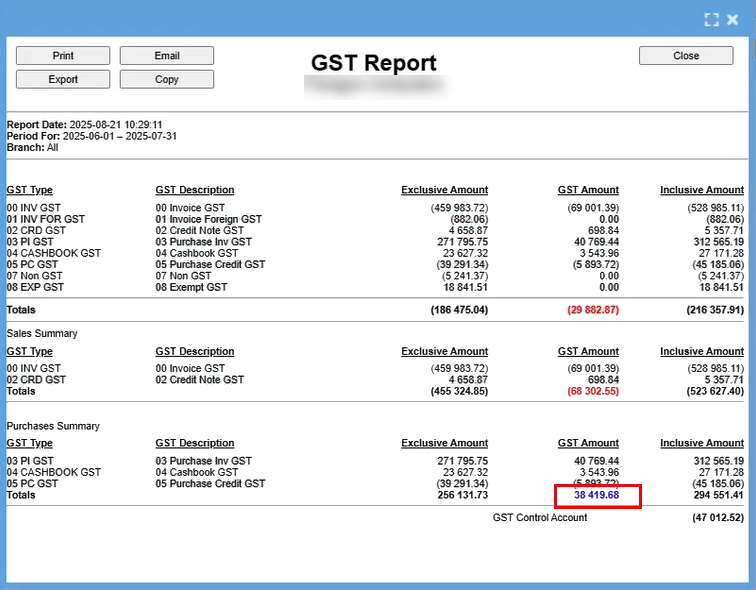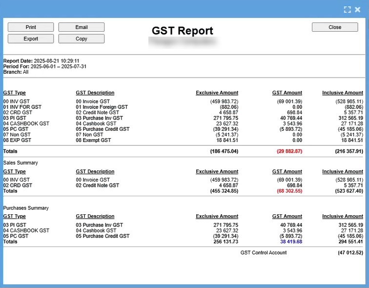 This is why it's important to select the "GST Components" option at the outset—it ensures greater accuracy and alignment with your official report.