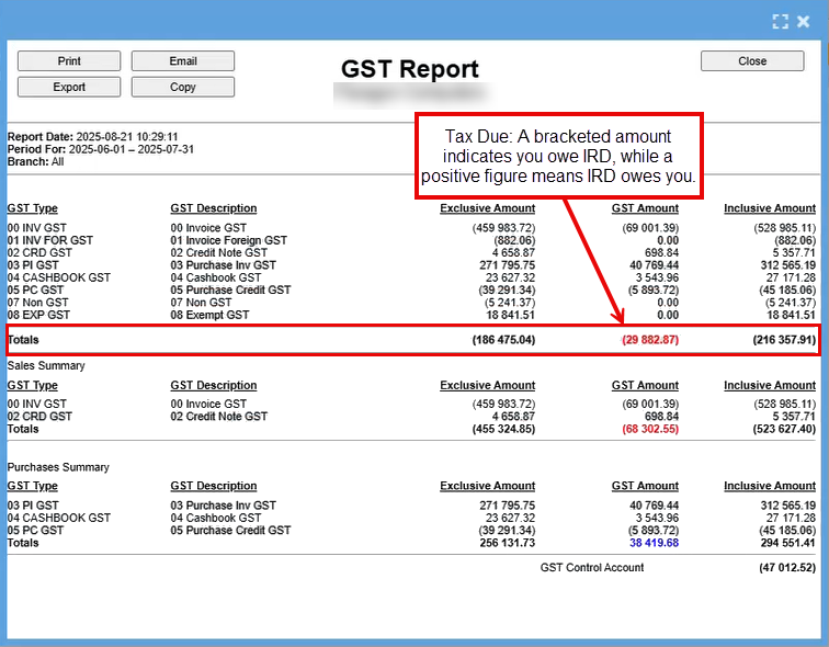 - Consolidated Totals for IRD Reporting (GST-Exempt Transactions) and