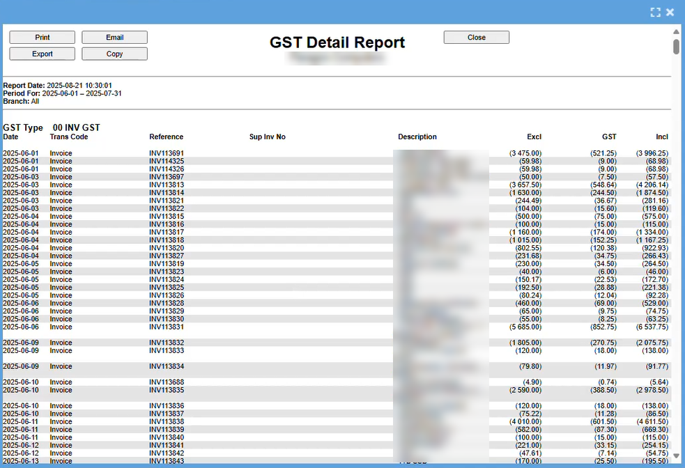 Once you are happy with your report Print this document as a PDF and name it "GST Detailed" and again add the date or month and year to easily identify this period.
