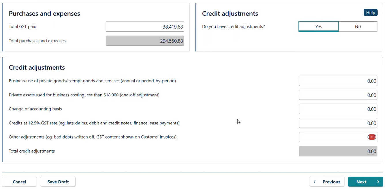 Use the "Debt Adjustment" section only when you're claiming GST credits from the IRD under the applicable scenarios listed below.