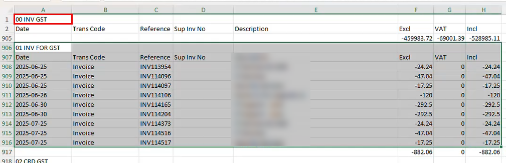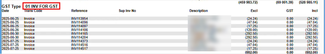 This summary is used to present IRD with the total value of transactions where GST was not applied.