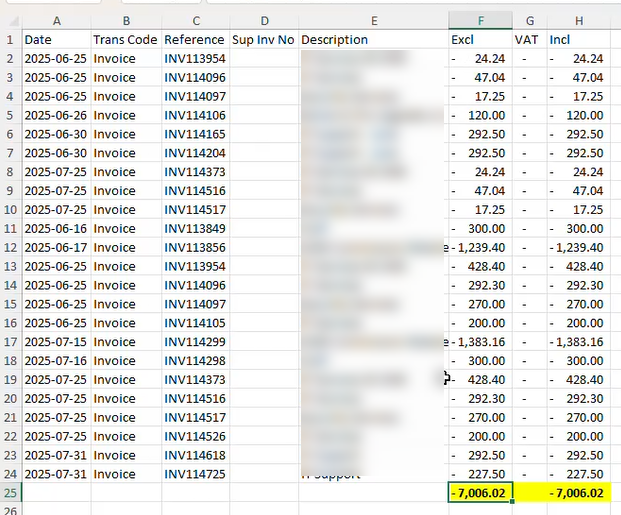 Review the report by scrolling through, and under the "Invoice" category, verify that all entries appear consistent and there are no irregularities.