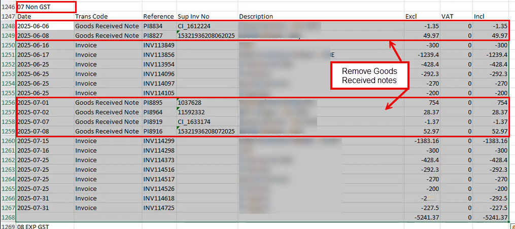 Copy the below and save it to another Tab (Tab 2) and delete the "Good Received Note" lines