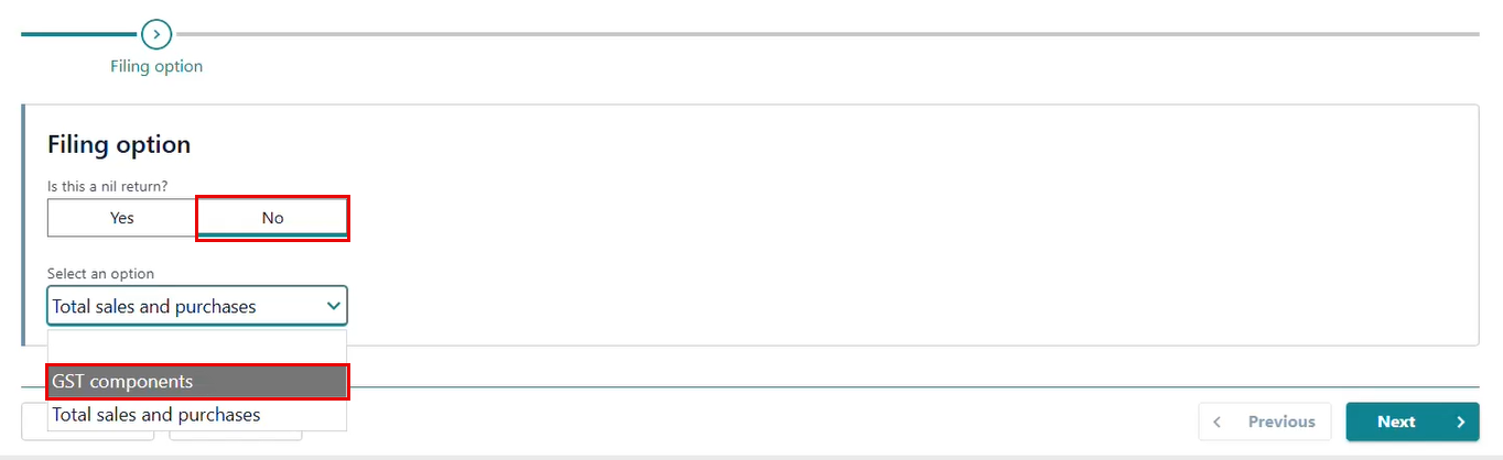 Ensure "GST Components" is selected to guarantee the submission is calculated precisely to the cent.