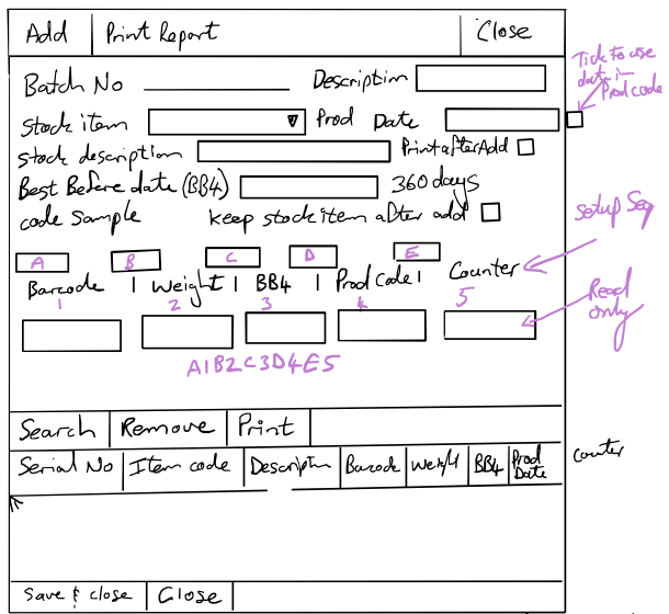 | Print a batch to show the serial numbers created for a items | |