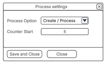 Process Option is set to Create by default