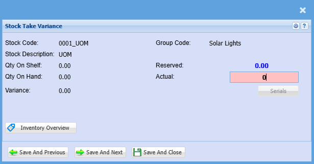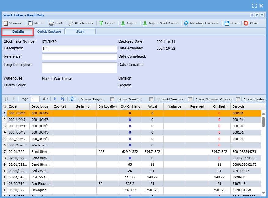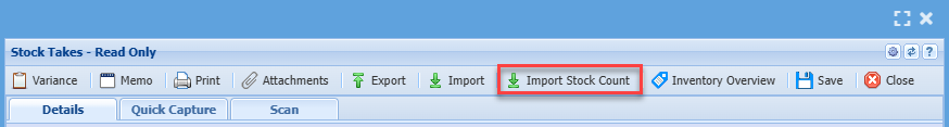 - Export the stock take batch to Excel using the export button, capture in Excel and Import the variance changes. (important note to take into account is that the export file is only relevant to the stock take batch you exported from) Should you cancel the stock take and create a new one you will have to export a new Excel file.