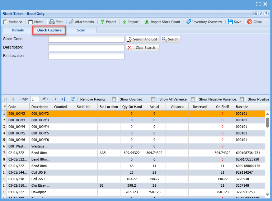 - Go to the Quick Capture tab, enter the matching stock code (must be the exact number not part) and enter the amount.