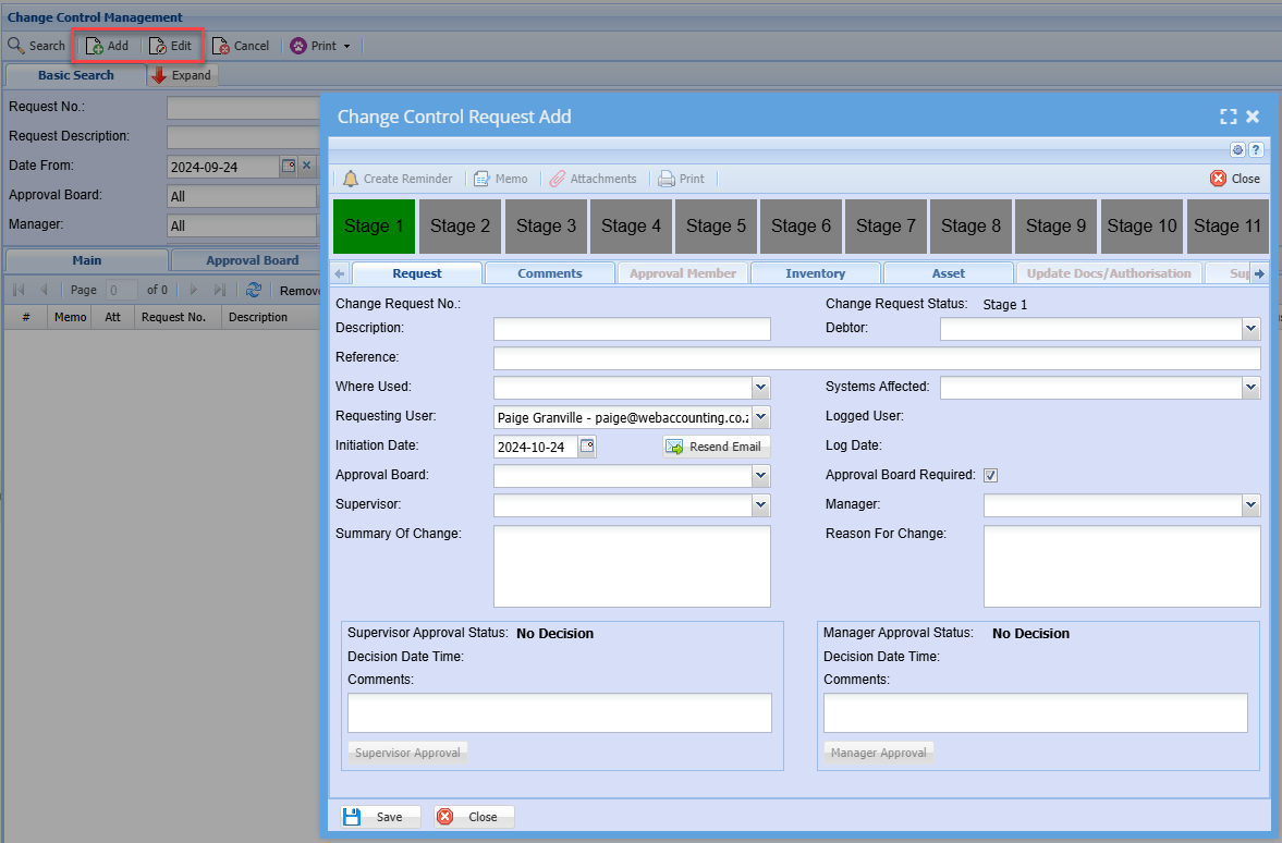 Once all tasks / support logs have been finalised and the manager has completed the change request |