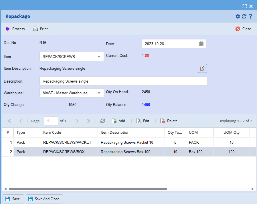 Adding in a new repackage item