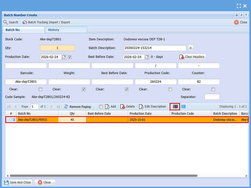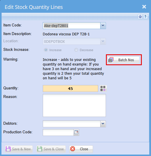 - Click on the Batch Nos Button