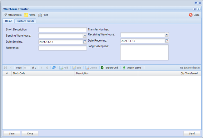 Sending Warehouse - Is the company warehouse that you are transferring stock from