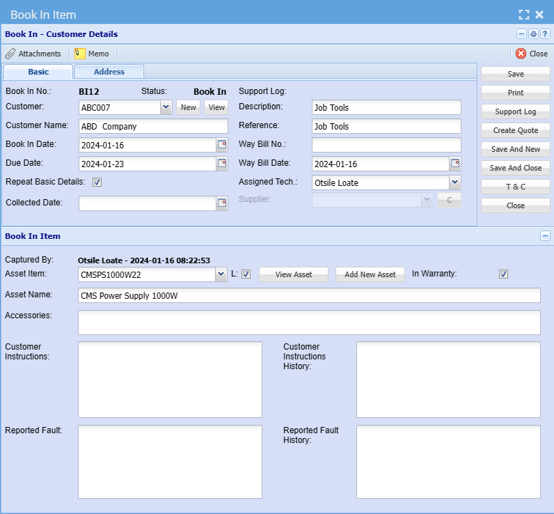 Bookin Integration with asset tracker allows you to book assets within job costing.