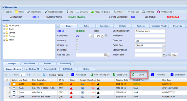 A Scope Creep quote can be created from a Job.