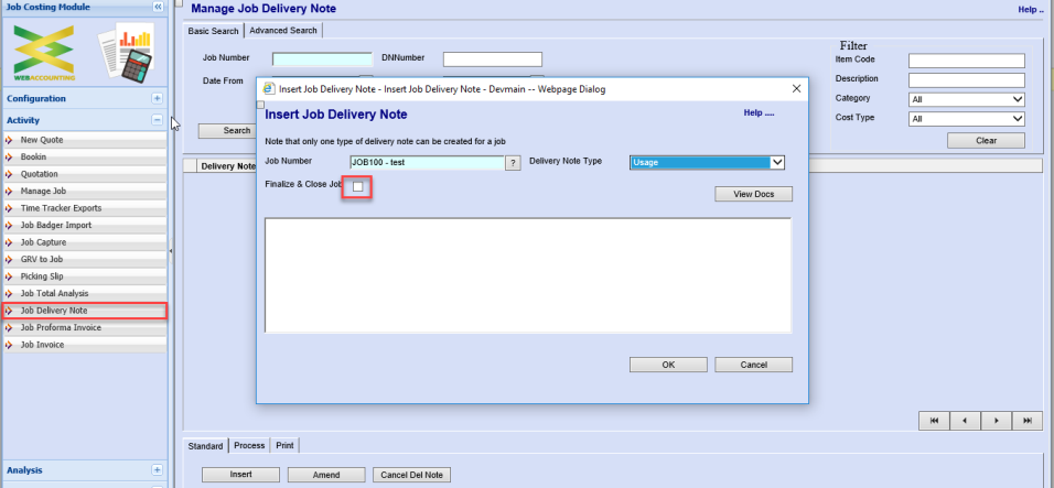 If the user by passes the delivery note and goes straight to Job invoice