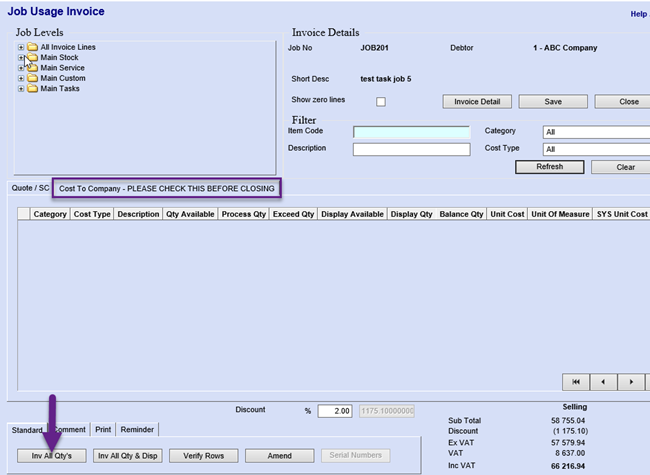 final Invoice tick Box - add a tick if this Job is complete and can be closed.