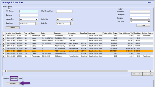 In this example we are only doing one invoice and selecting the Usage Invoice selection.
