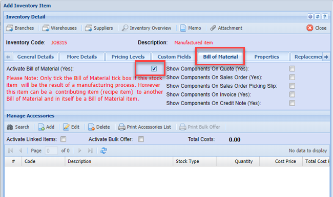 1.Tick the BOM Item Box