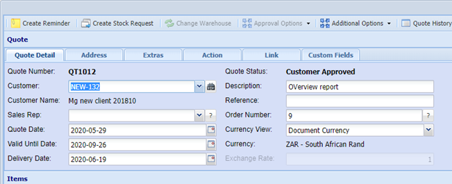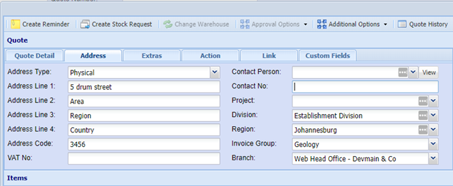 Job Costing > Activity >Quotation