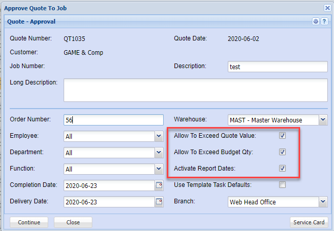 Select Customer Approval – Remember this must be selected to report correctly.