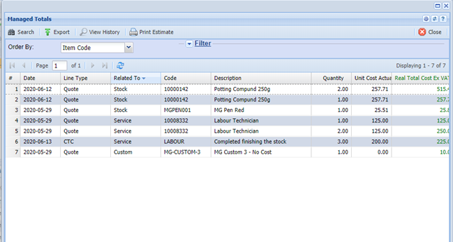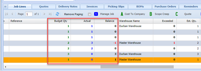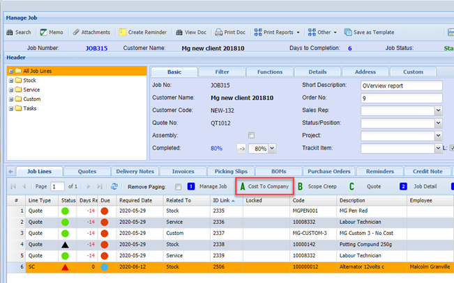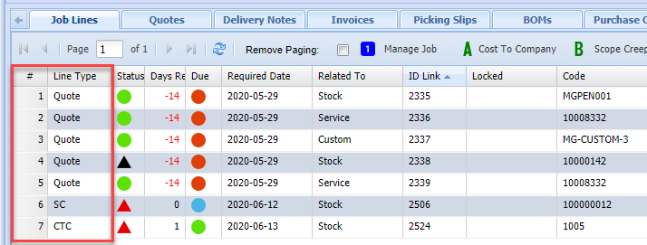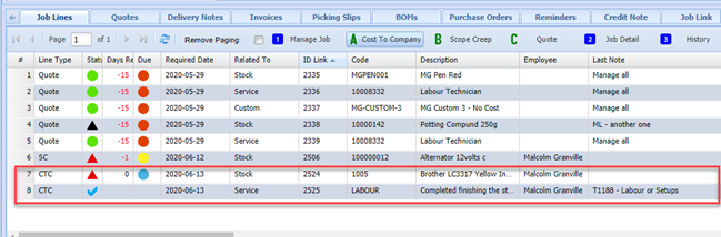 When all stock items have been managed. Verify that the job lines are correct and correctly managed.