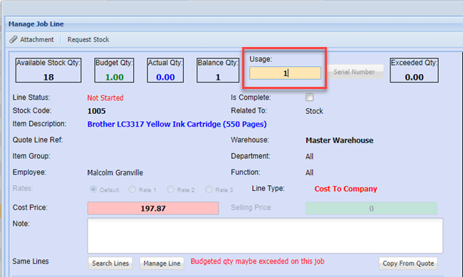 Manage the stock items added to the Job