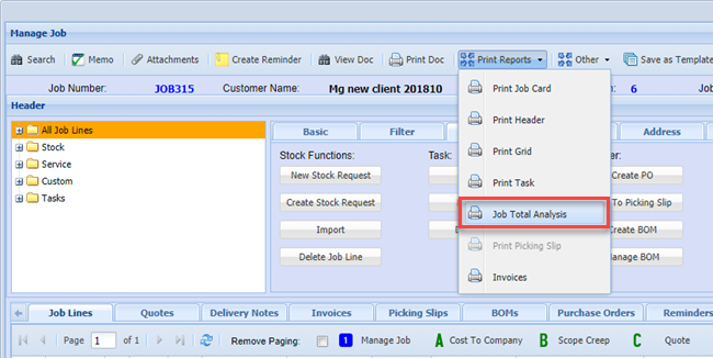 Click the Job Total Analysis Button