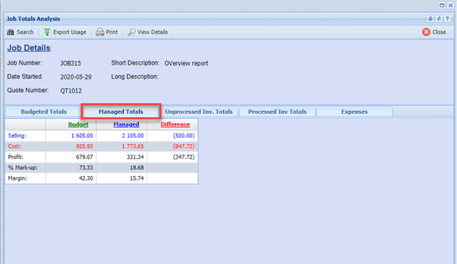 Click the Managed Totals tab