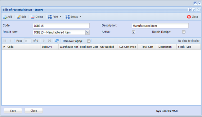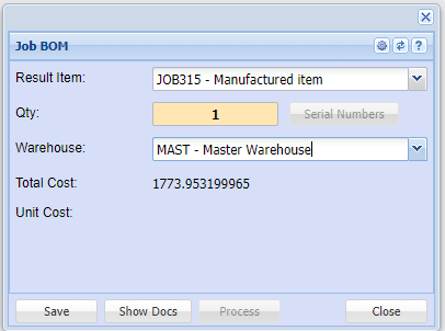This process allows one to produce a BOM resultant item using a job, thereby accurately controlling the cost of the resultant item including and labour cost that are applicable.