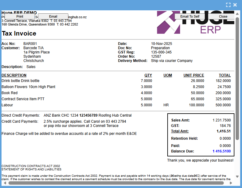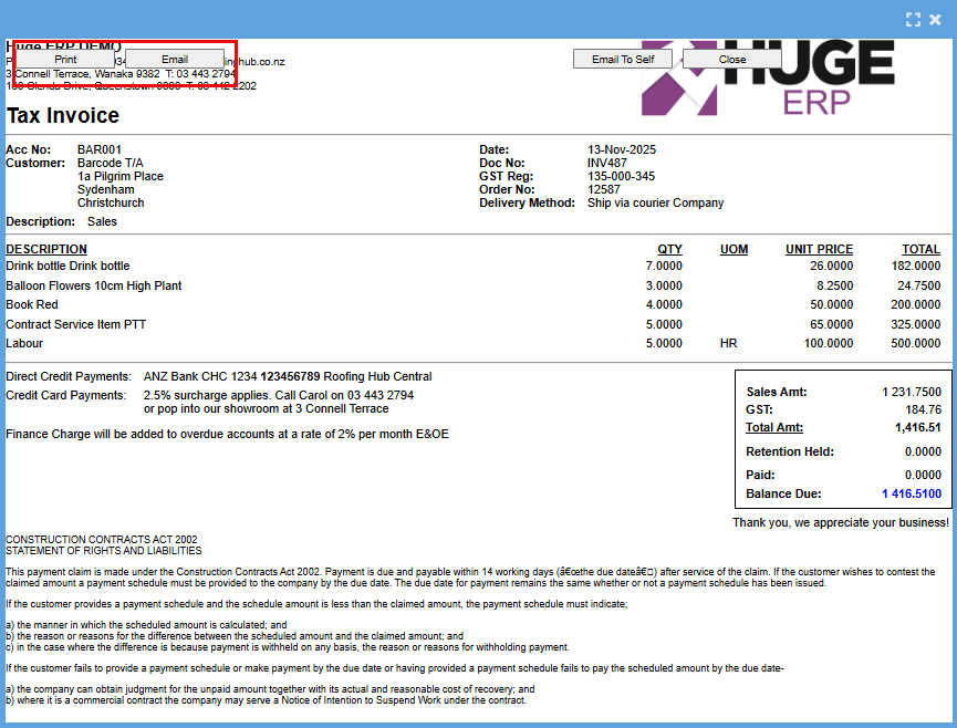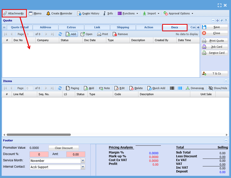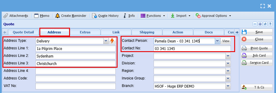 Note: if details are edited on the quote, this will only apply to the specific quote and not update the debtor setup unless the debtor setup is access and updated as well.