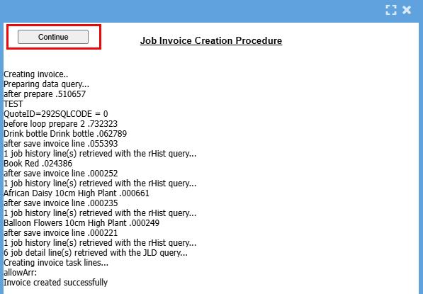 - Click Continue to create the job