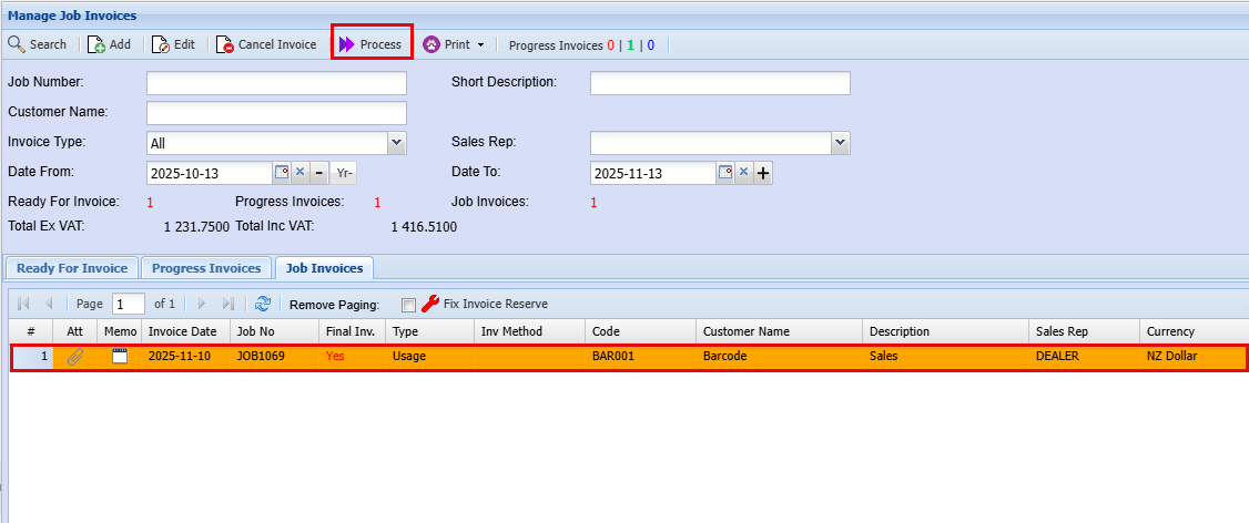 | 16 | Create PO Drop Ship | This is to allow you to create a PO from the Job once its started. |