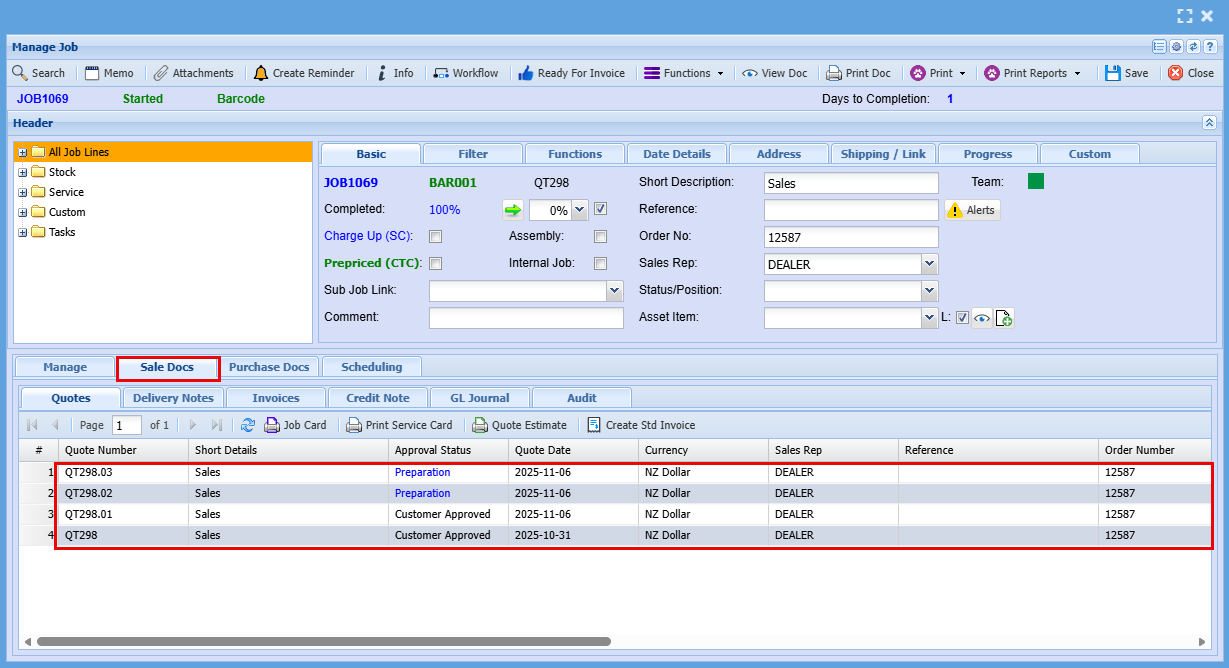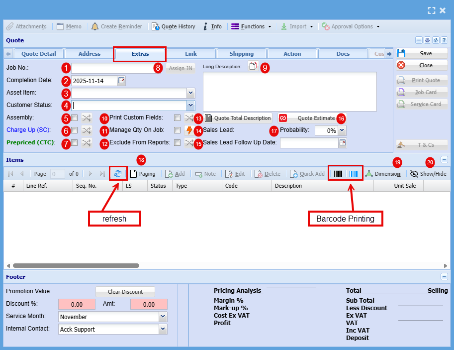 | 24 | Job Link | You may find that you already have a job for this customer, and this is a sub job, to can select this job form the drop-down menu link to two or more jobs. |
