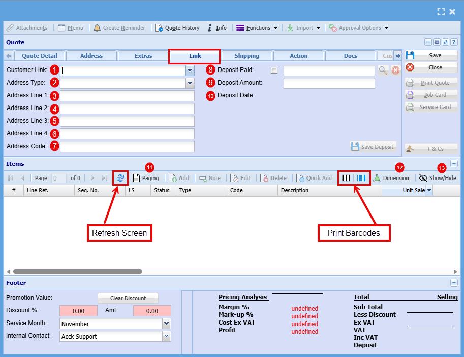 | 1 | Quote Number | This is the Quote number linked |