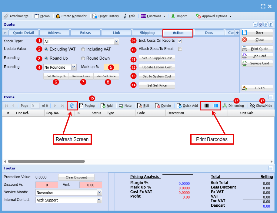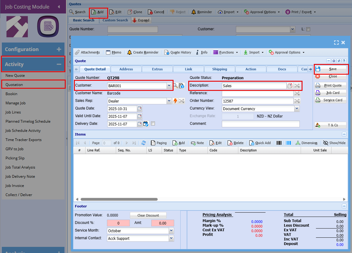 Job Costing > Activity > Quote