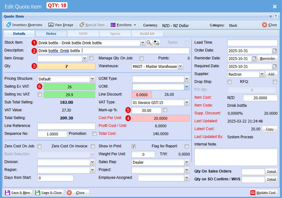 Ticking this box allows you to generate a Request for Quote on the fly—pre-filled with all relevant details, so you don’t need to start from scratch when requesting updated pricing for an item. |
