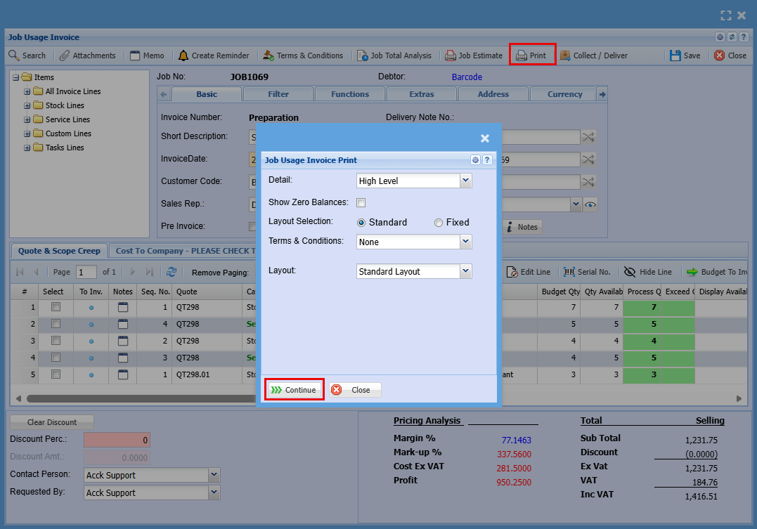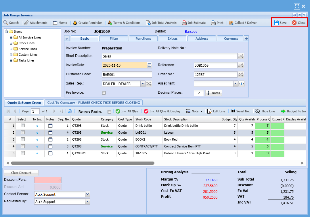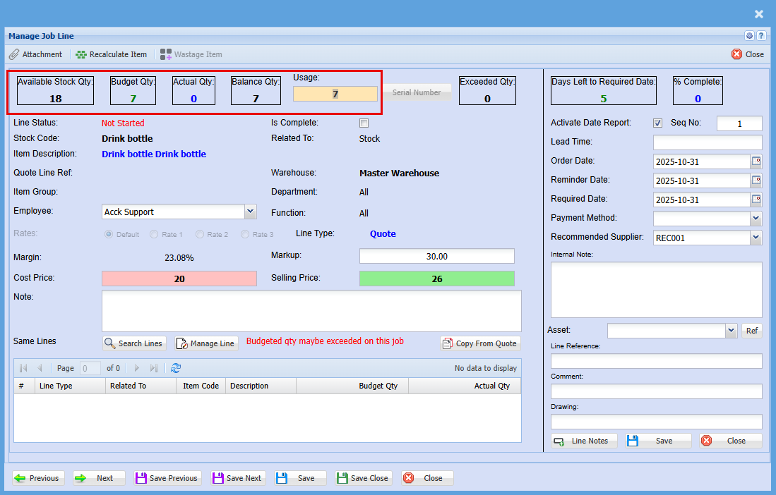 | 18 | Allow to Exceed Budget Qty | Ticking this box allows the actual quantity used in the job to exceed the budgeted amount. This is useful when additional units are required during production or service delivery. If left unticked, you’ll need to produce a new quote to add more units. |