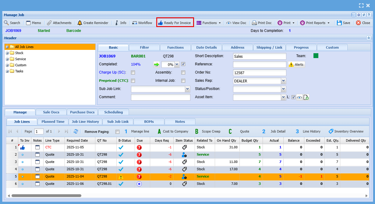 | Required Date | This is the date the Job is to be completed by |