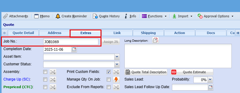 | 17 | Allow to Exceed Quote Value | Ticking this box allows actual job costs to exceed the quoted value. This is helpful when unexpected expenses arise during production or service delivery, and you want the system to continue tracking costs without treating the quote as a strict limit. If left unticked, a new quote must be created to include any additional costs. |