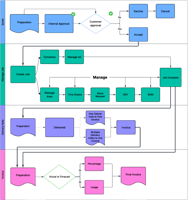 - Option 2: Go directly from Managed Job to Invoice if no delivery documentation is required.