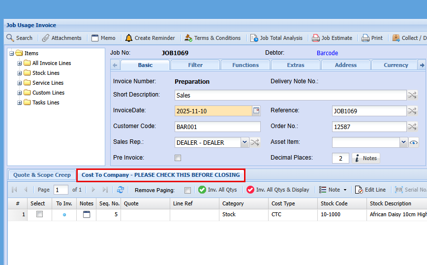 To invoice a Job go to Job Invoicing
