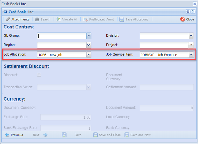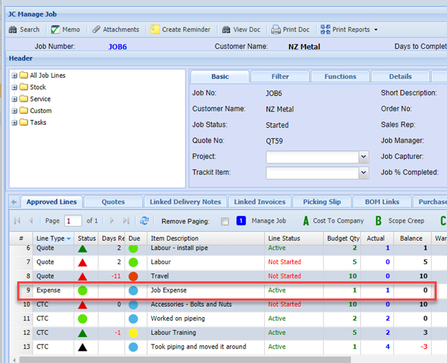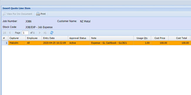 Looking at the job detail line, you will see that the expense has a note, usage of one and the cost price