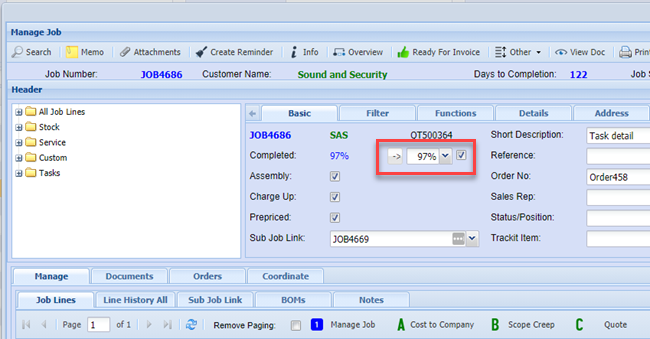 The tick box on means that when the job is saved it will automatically update the percentage in the drop down.