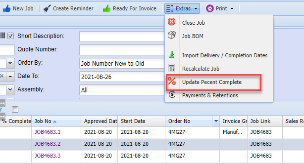 Job Percentage complete