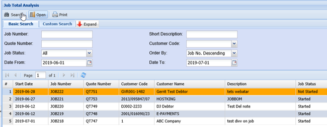 Job Number – search by entering the job number